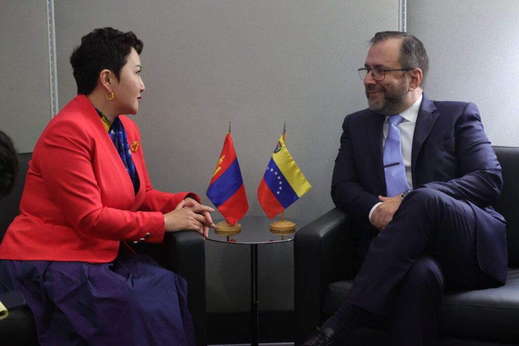 Desde Nueva York, a propósito del 80 periodo de sesiones de la Asamblea General de la Organización de las Naciones Unidas (ONU), el ministro del Poder Popular para Relaciones Exteriores de Venezuela, Yván Gil, sostuvo este jueves un encuentro cordial con Batmunkh Battsetseg, ministra de Asuntos Exteriores de Mongolia.