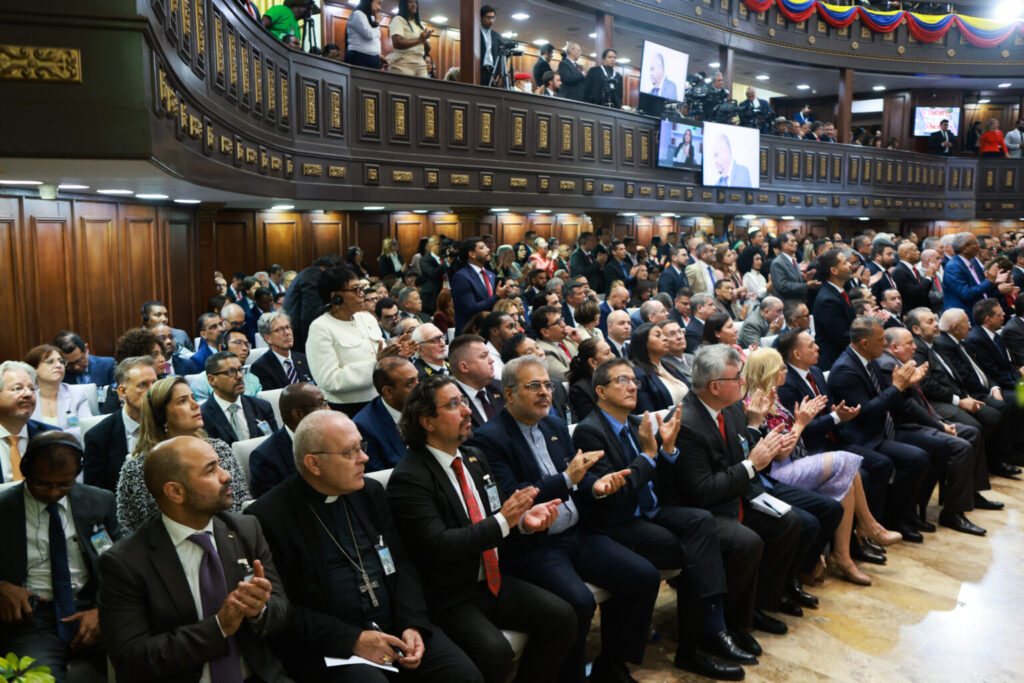 n cumplimiento al artículo 237 de la Constitución Bolivariana de Venezuela, el presidente de la Asamblea Nacional, Jorge Rodríguez, recibió a la presidenta encargada, Delcy Rodríguez, para la rendición de cuentas de la gestión del Poder Ejecutivo durante el año 2025.